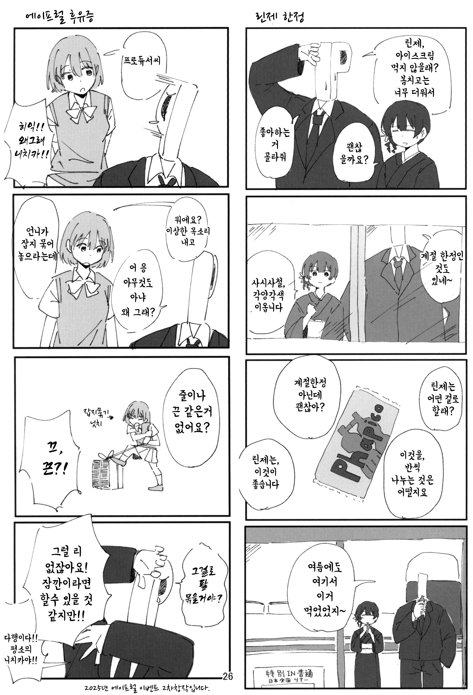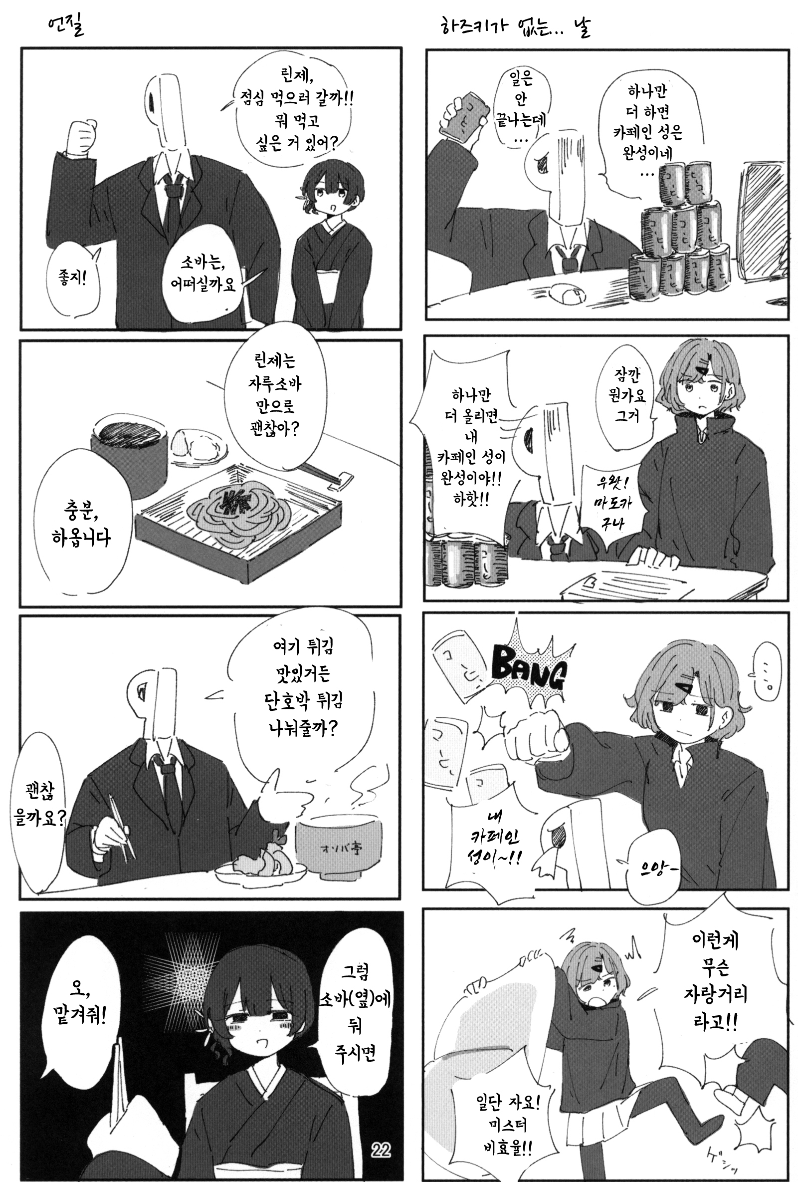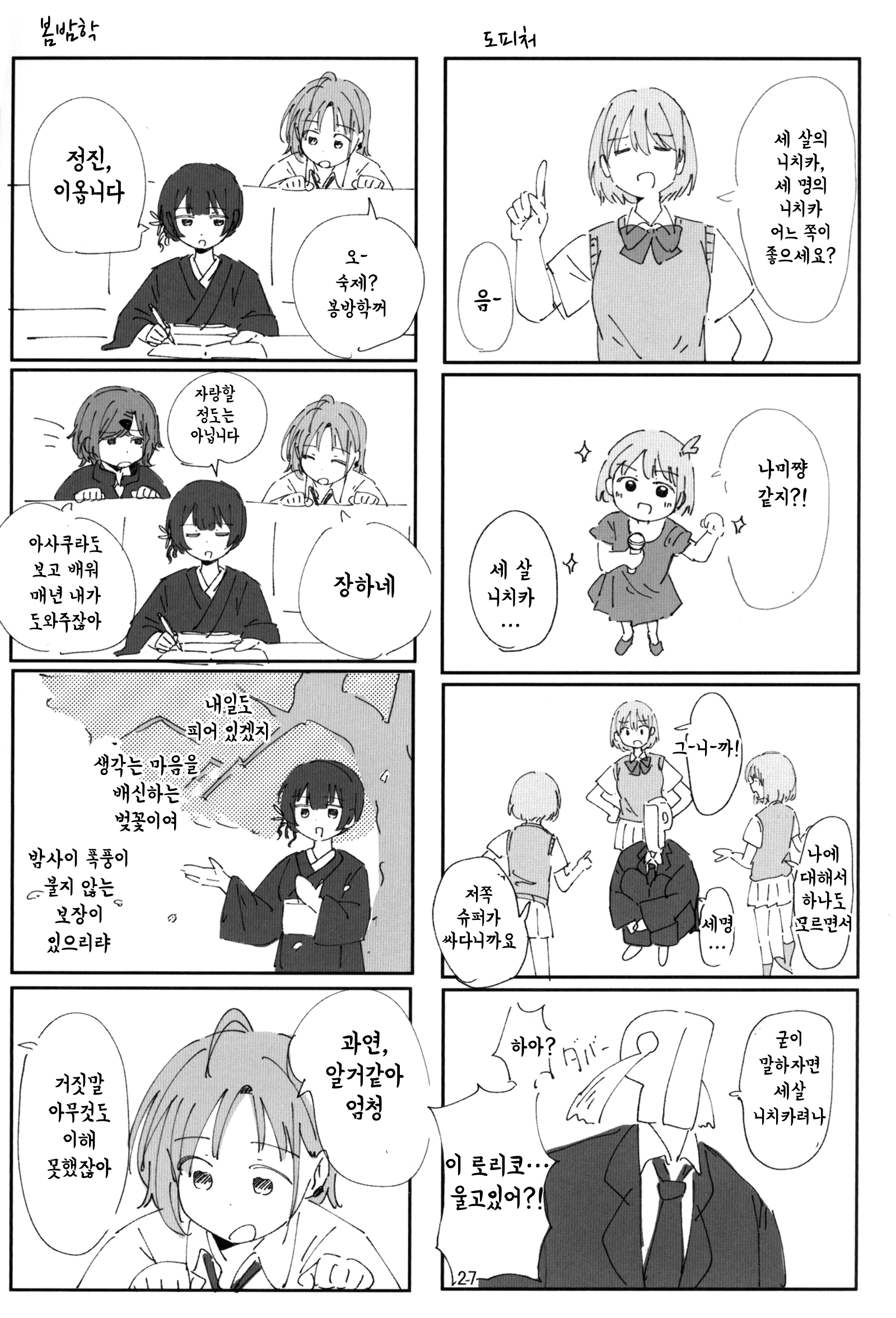 아이리스 프로젝션에서 나온 서클 칠칠칠호실의 4컷 모음집. 이해가 안 가는 부분은 아마도 언어유희일텐데 귀찮아서 패스. 실없는 이야기들 속에 반짝반짝 재밌는 것들이 섞여있어서 좋았어.