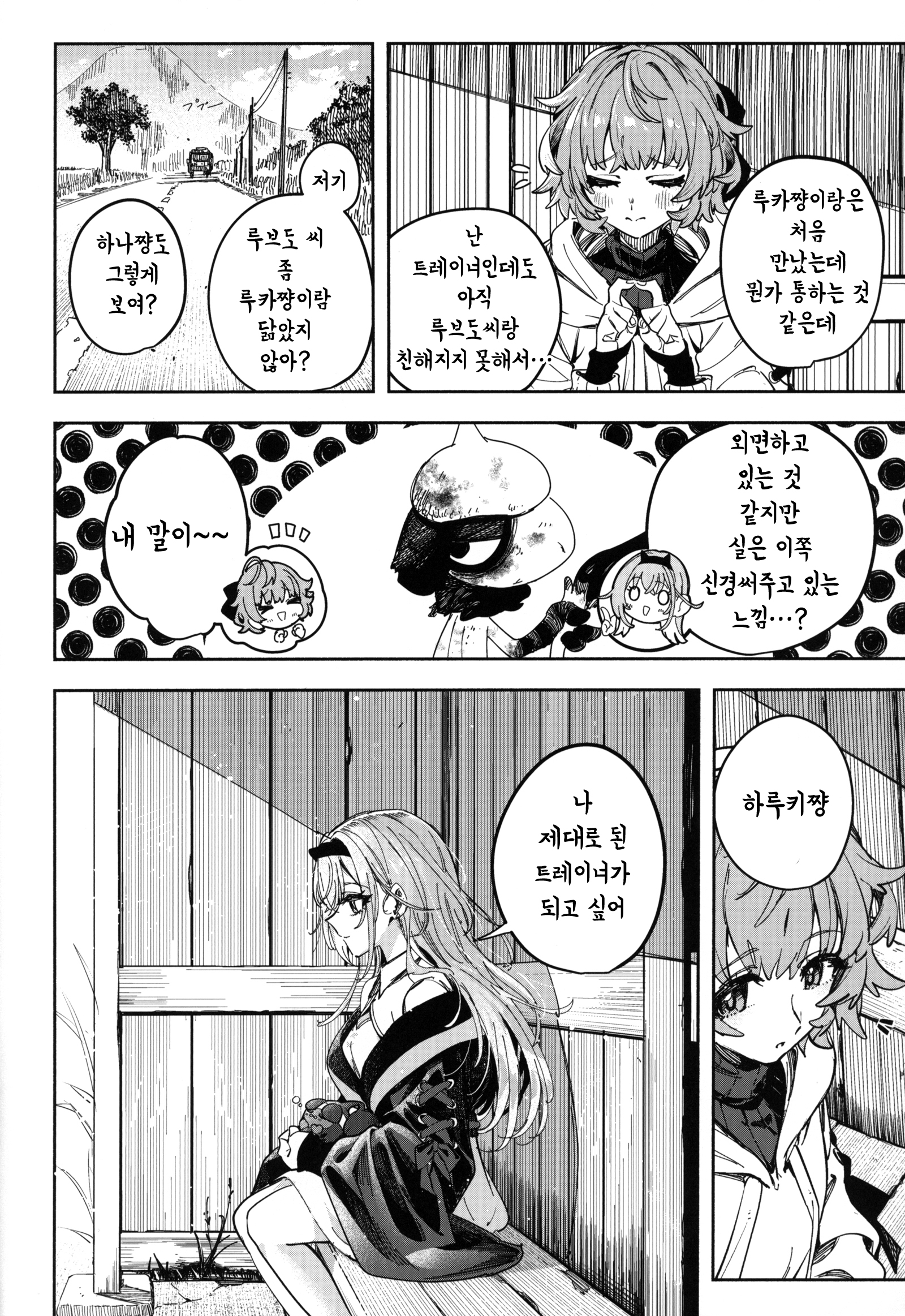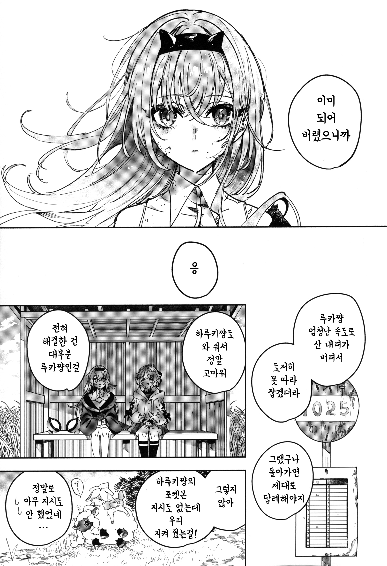 아이돌이란 무엇? 이라는 아이돌마스터 시리즈를 관통하는 질문에 대해서도, 하나만큼 순백으로 모르겠어! 라고 답할 아이돌도 드물다고 생각한다. 아이돌이 된 이유도 날개라는 글자가 어쩌고 운명 같은 소리를 하지만 사실은 굉장히 시시한 이유였던만큼, 그 이유를 찾아주기 위해서 P가 헛돌았던 것도 이해가 간다. 아이돌이 포켓몬 활동으로 대체된 이 세계관에서, 트레이너가 된다는 것은 무엇?이라는 질문에 대답하기 위해 등에 커다란 상처를 남기게 되는 전개가 침 흘릴만큼 맛있었다. 공식에서도 비슷한 흉터를 남겨 주면 좋을텐데 생각할 정도.