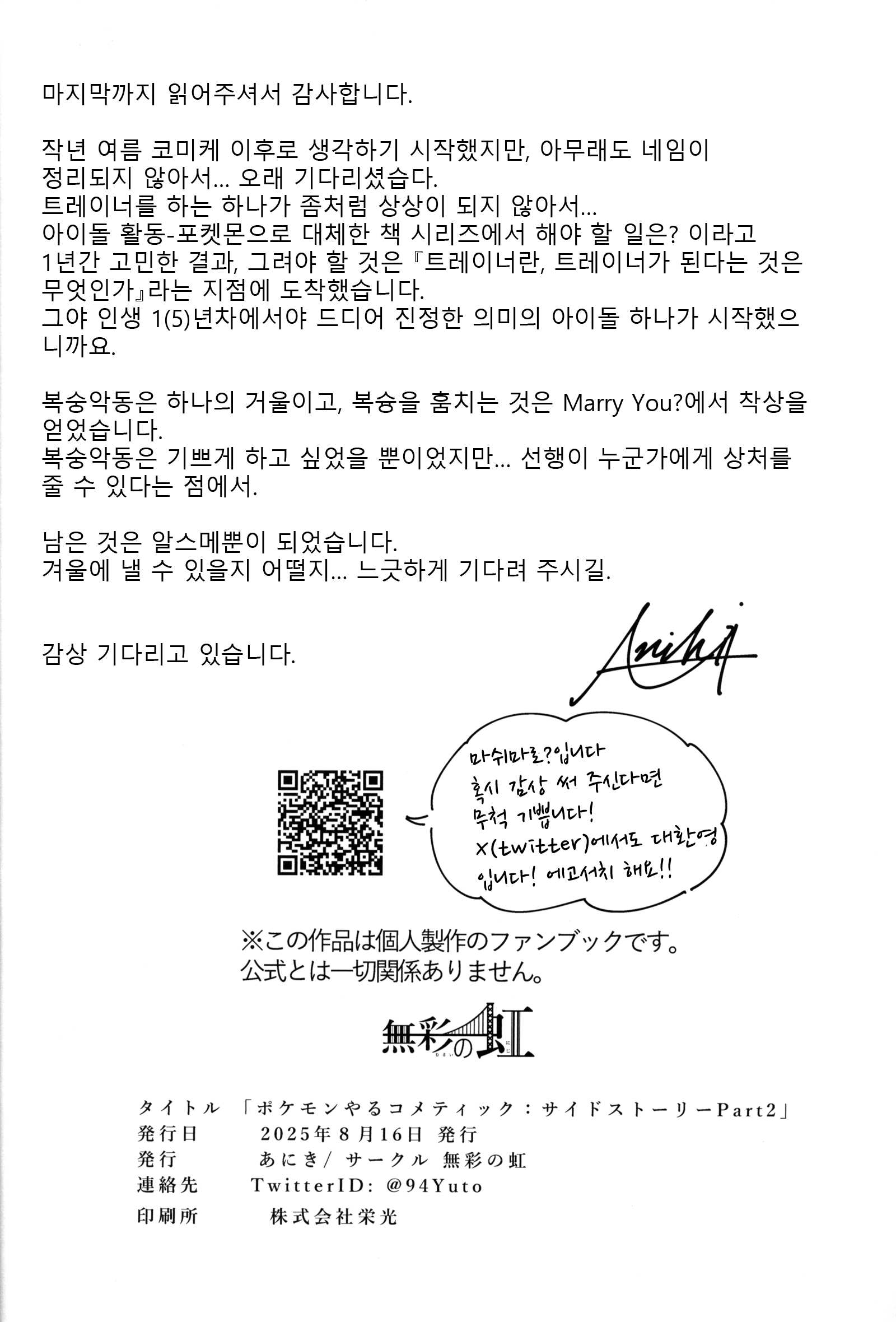 C106에서 나온 서클 무사이노니지의 포켓몬 책 하나 편. 전에 본편 설정집에서 설정이 조금 바뀌었다.