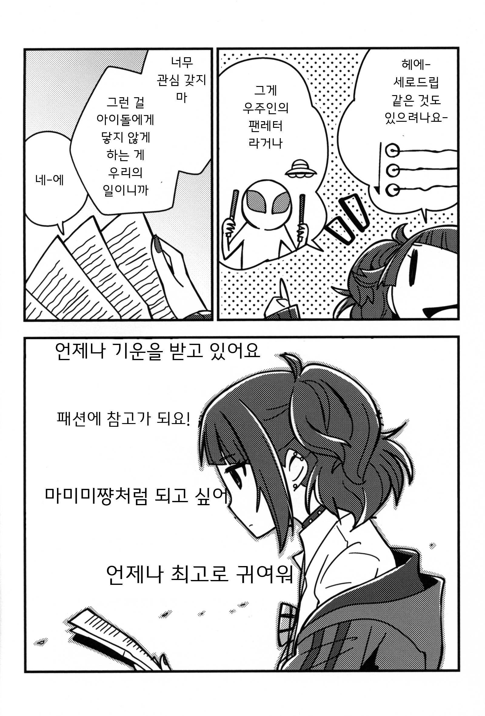 C106에서 나온 서클 파의 마미미 책. 이정도면 공식에 비해서도 엄청 솔직?한 편이지만... 마미미가 솔직해지면 정말로 엔딩? 날 것 같아서 무섭단 말이지. 파라코레 편지도 솔직하게 대학가서 하고 싶은 일 찾지 말고 아이돌 계속하렴, 했으면 기뻐서 아이돌 전업했을 것 같고.