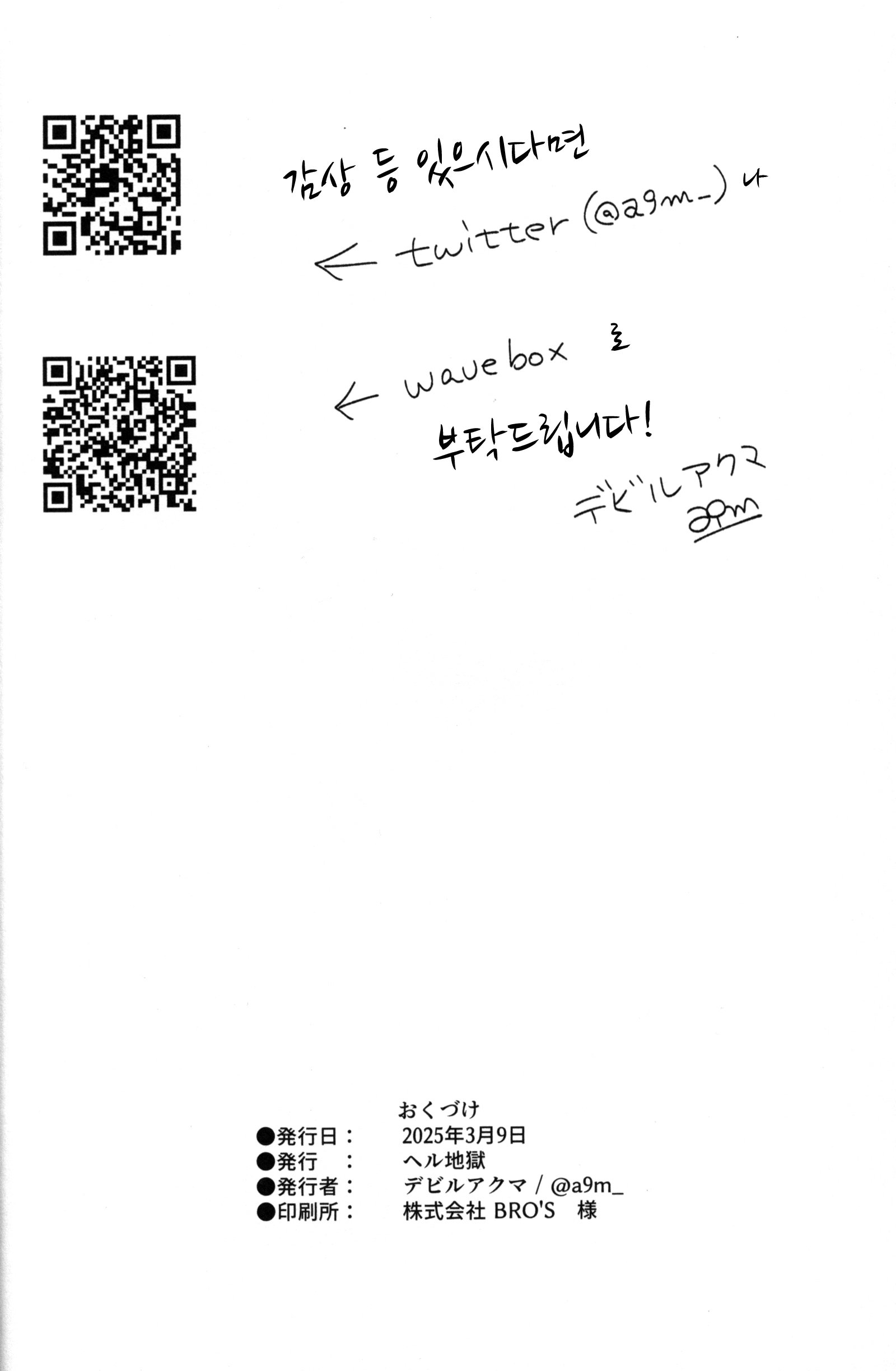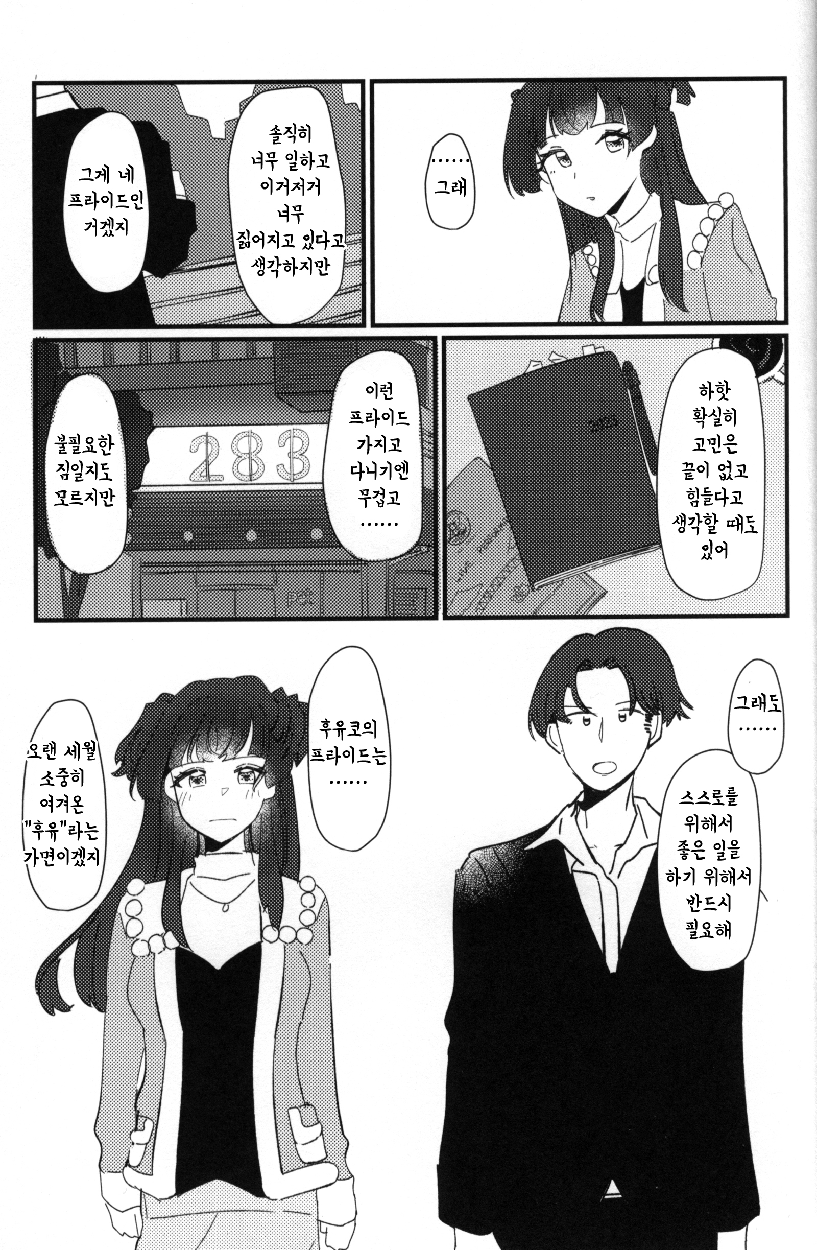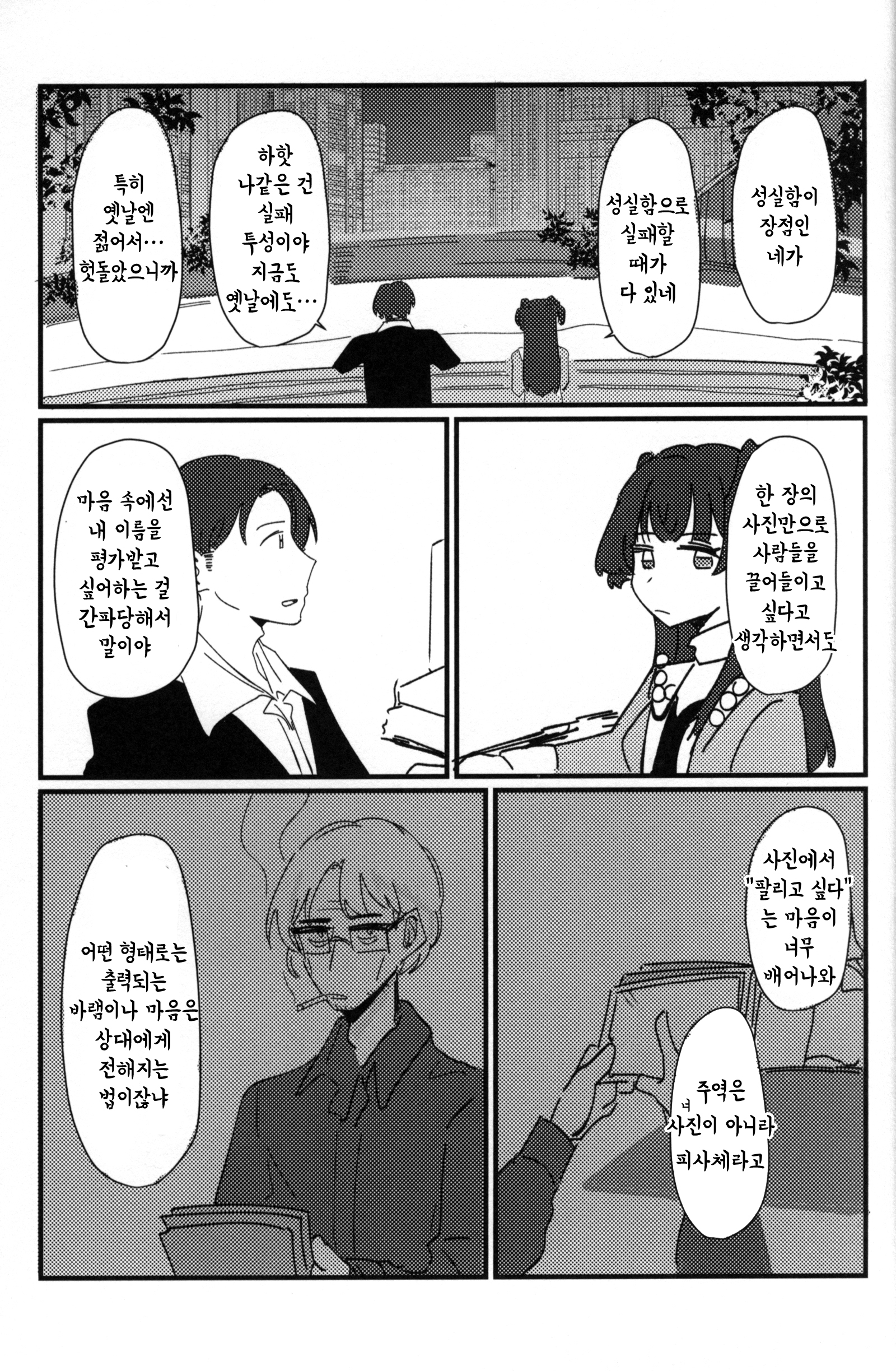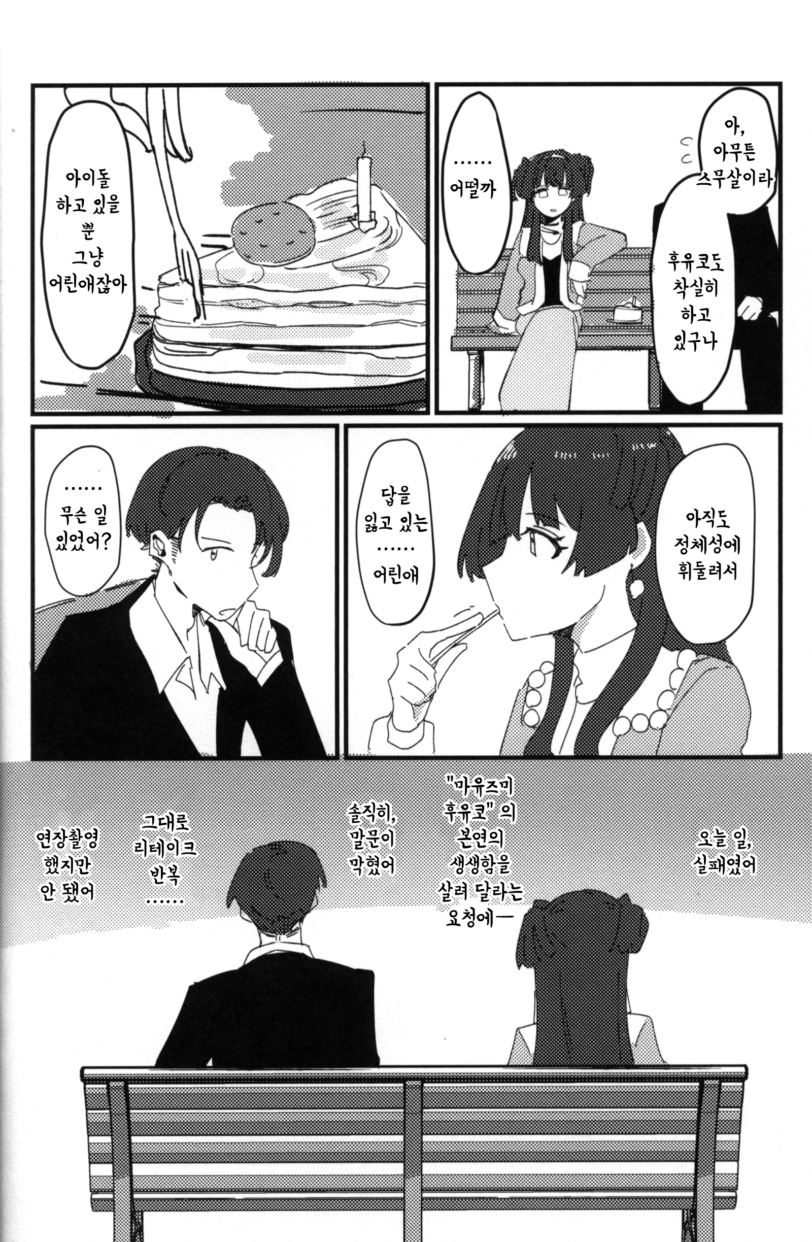SSF 09에서 나온 서클 헬지고쿠의 후유코 책. 샤니마스의 최근 P 카드들이 그동안 놓고 왔던 것들을 돌아가서 다시 가져오는 내용으로 나오고 있는데(메이의 사낫삐, 사쿠야의 모델시절 팬, 코가네의 꿈을 쫓는 소녀 등등), 후유코 윙의 사진기사도 다시 나온다면 딱 이런 느낌 아닐까. 어 후유코이즘은 토오루 서폿들 이상으로 난해해서 아직도 소화 못 시켰지만.