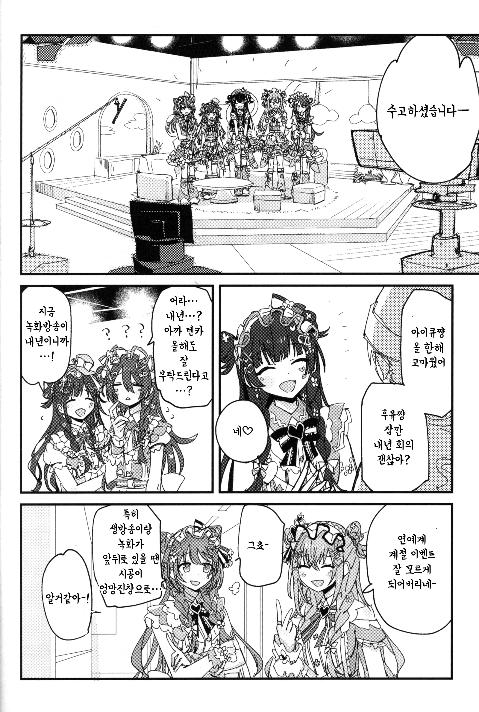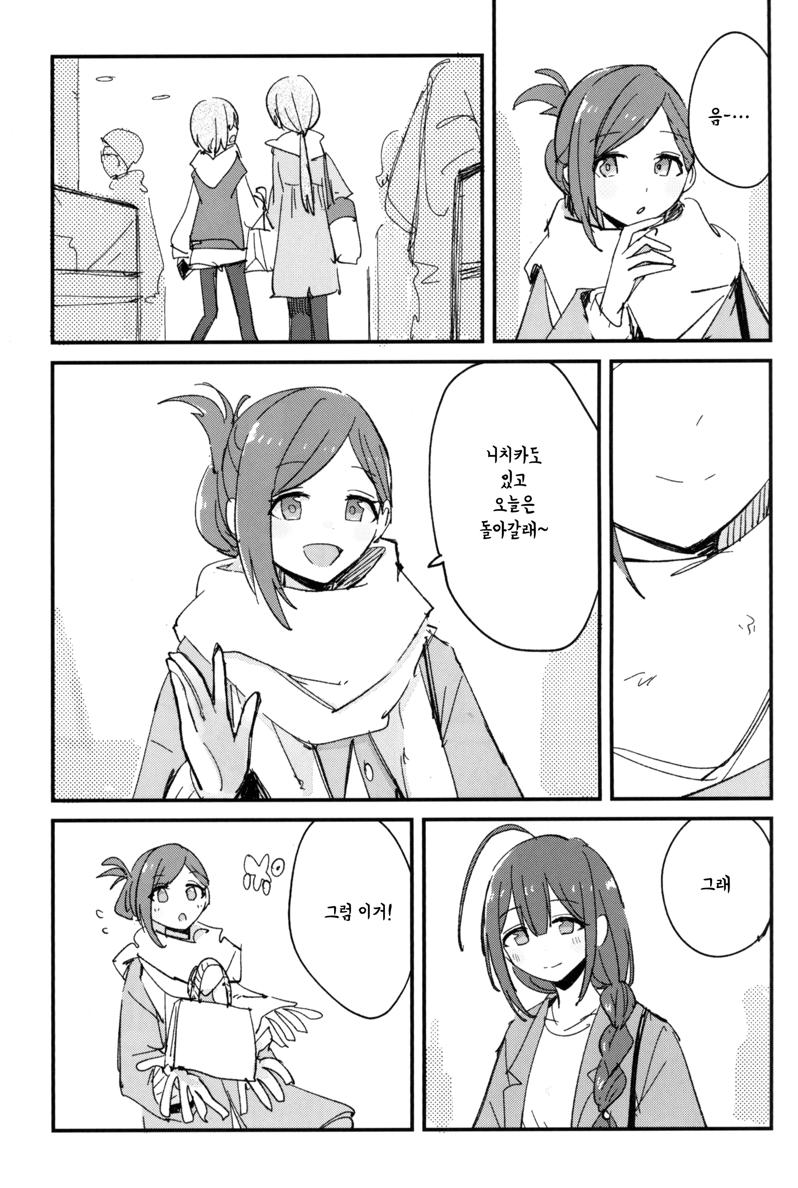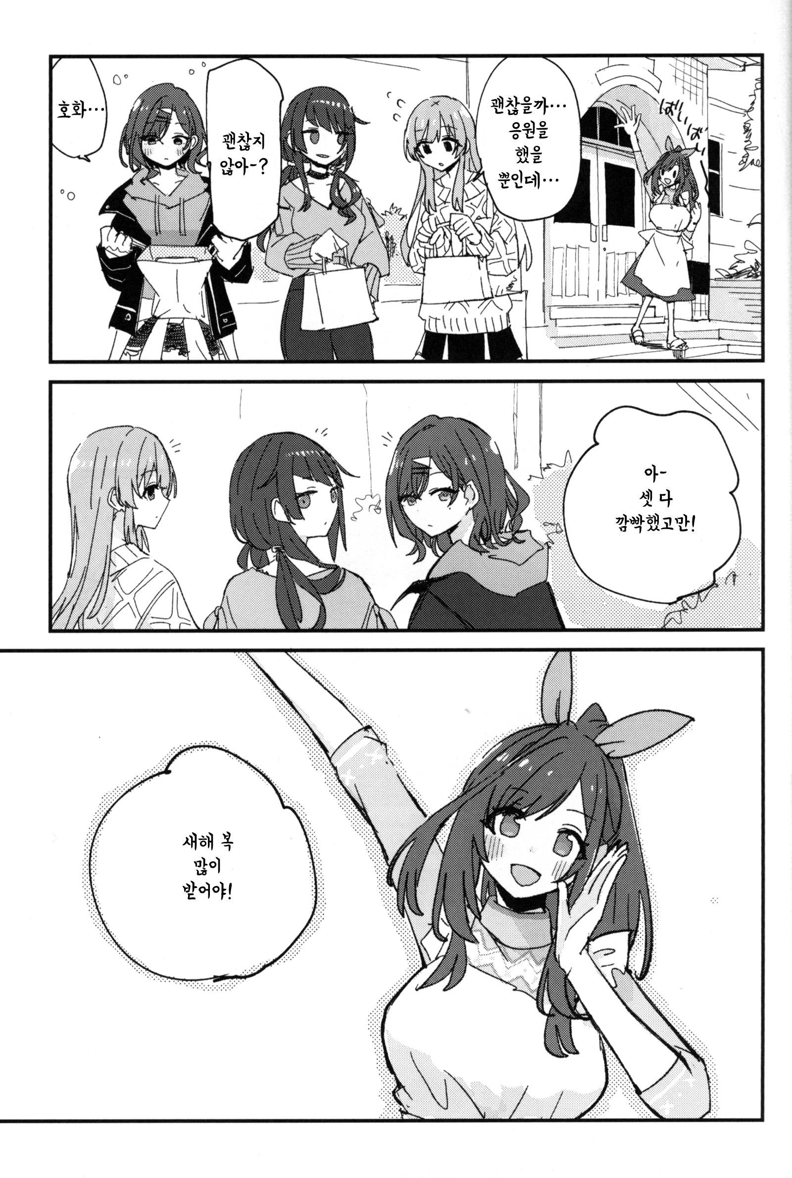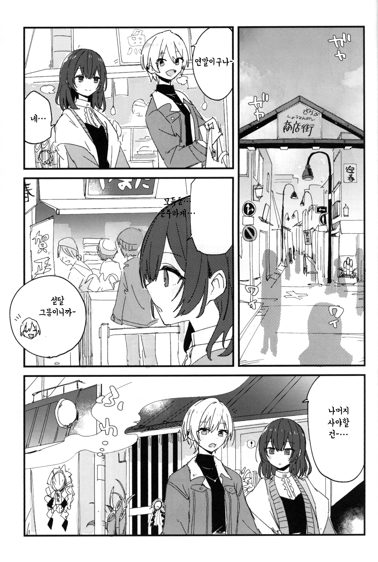 C107에서 나온 서클 전파화사단의 기숙사 설맞이 책. 일본어로는 연말인사인 좋은 한해를~ 이랑 새해인사인 새해 복 많이 받으세요~ 가 다르지만 그냥 자주 쓰는 표현으로 통일했다. 치어리딩 키리코 그리고싶어서 끼워넣은 부분이 너무 어이없어서(?) 웃겼어. 28+3명 다 그려준 것도 정말정말 고마웠다.