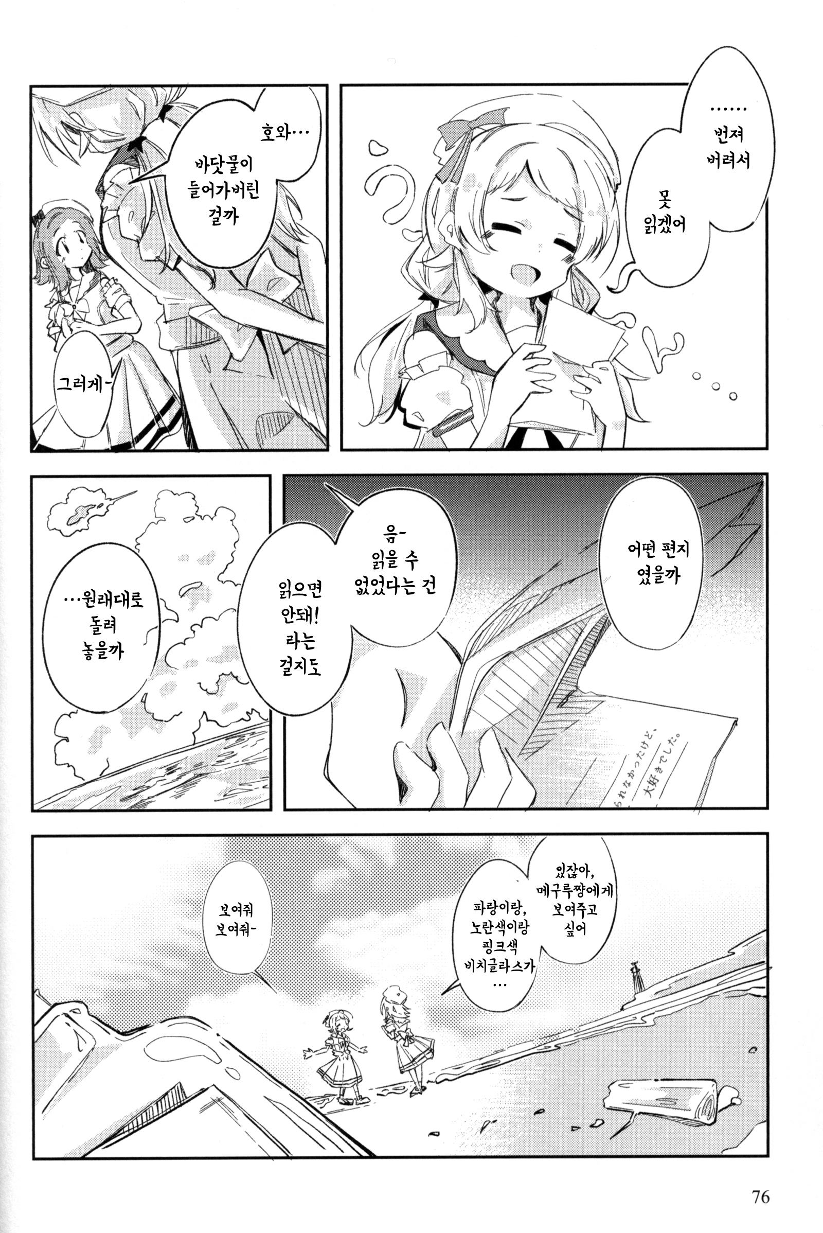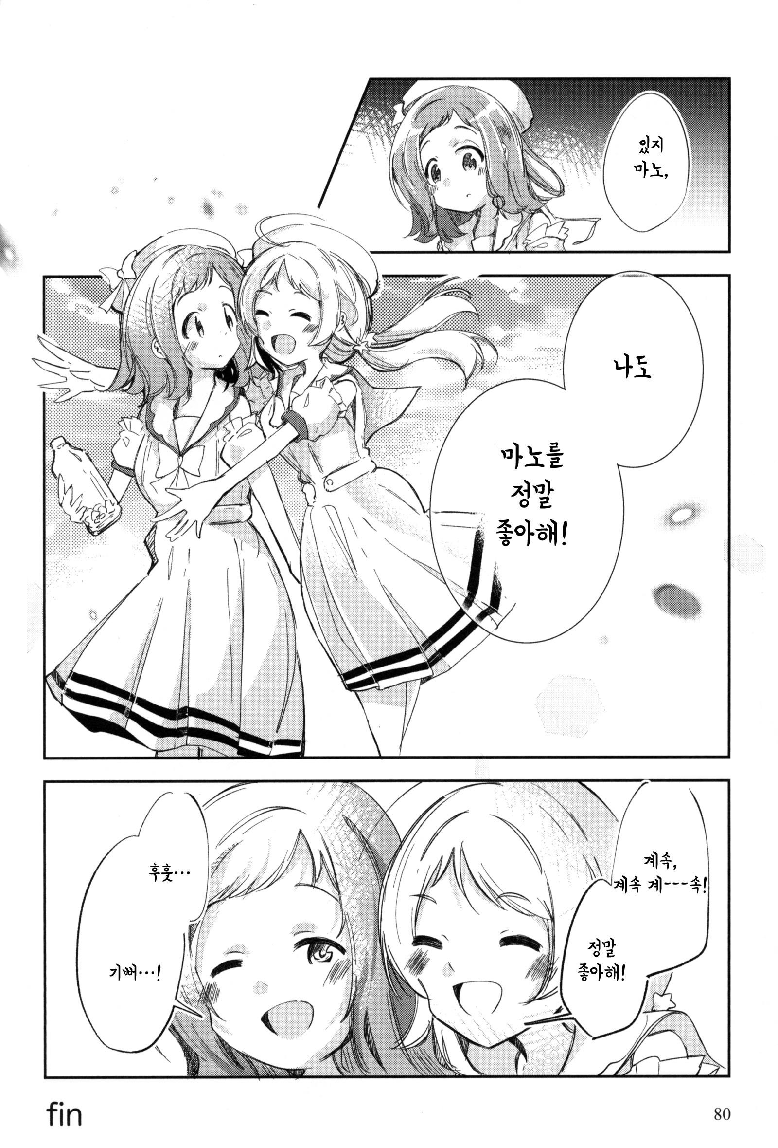 기쁘고, 안심되고, 따뜻한 것이 넘쳐흐른다. 끌어안을 수 없을 만큼 벅차오르는 마음을 가능한 한 꾹꾹 담아서, 감사의 말을 마노에게 보냈다.