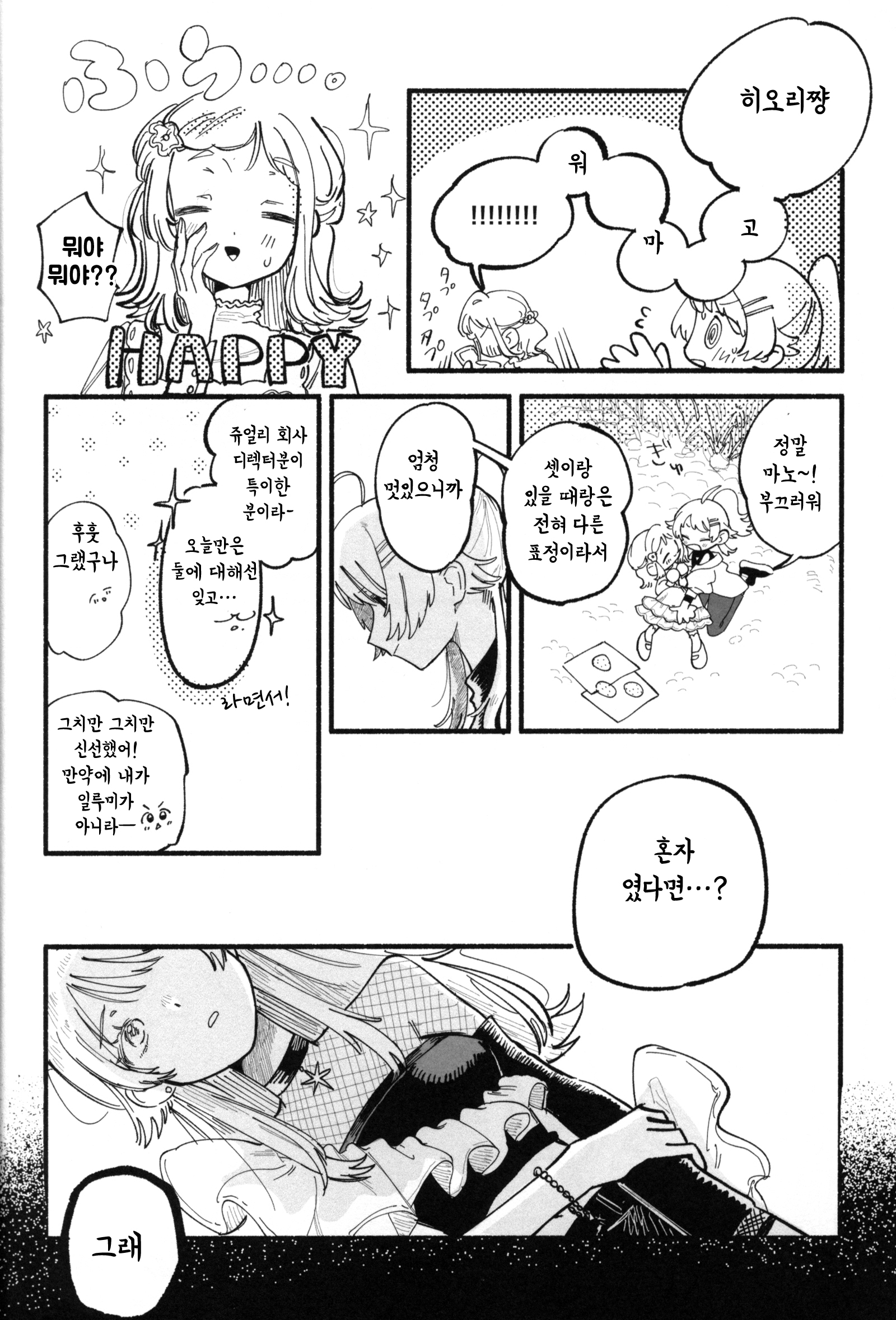 내용도 너무 좋았어. 일루미가 서로의 진로에 영향을 주는 점이라든가, 메구루의 미국 이름이 마거릿이라든가 하는 이야기는 공식이라고 해도 믿을 정도의 완성도의 이야기가 뒷바침하고 있었다. 대부분의 이야기에서 어떻게든 히오리가 들어가버리는 점에선 웃었어.