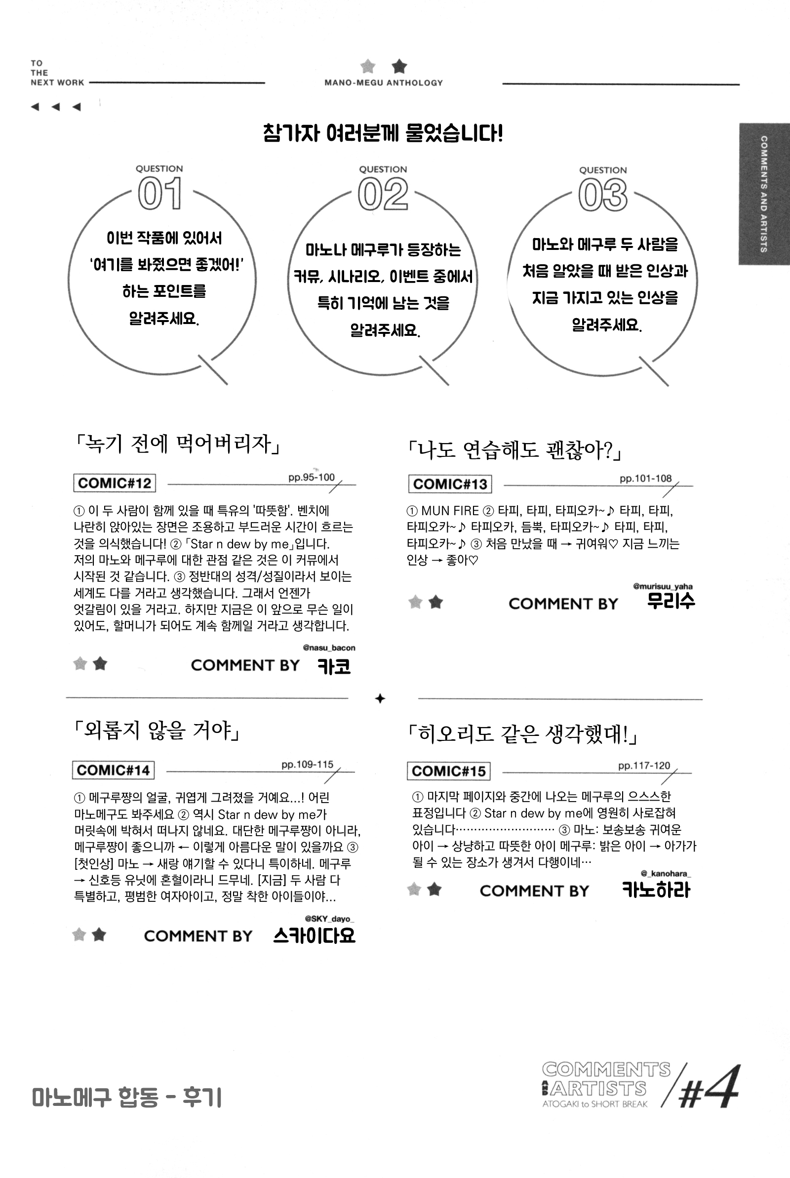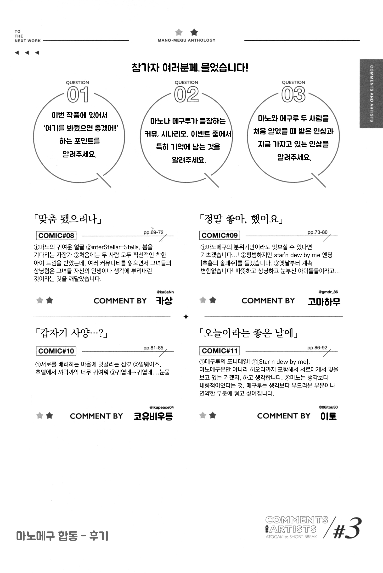 그리고, 좋아하는 것에 대해 이야기하는 마노는 무척 즐거워 보이고, 올곧고, 반짝반짝 빛난다. 마노의 멋진 점이고, 내가 좋아하는 점이다.