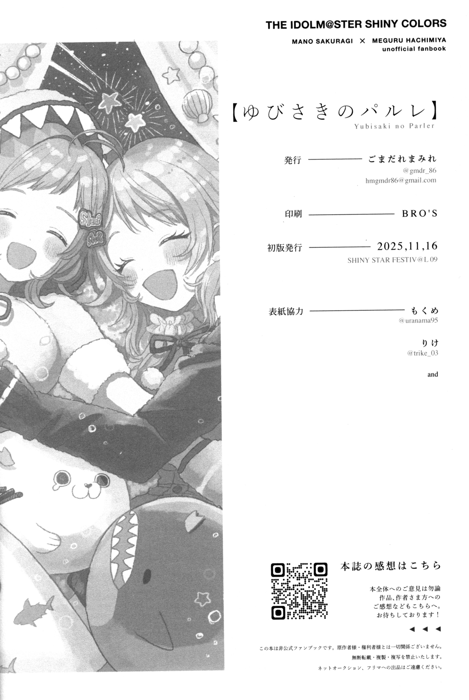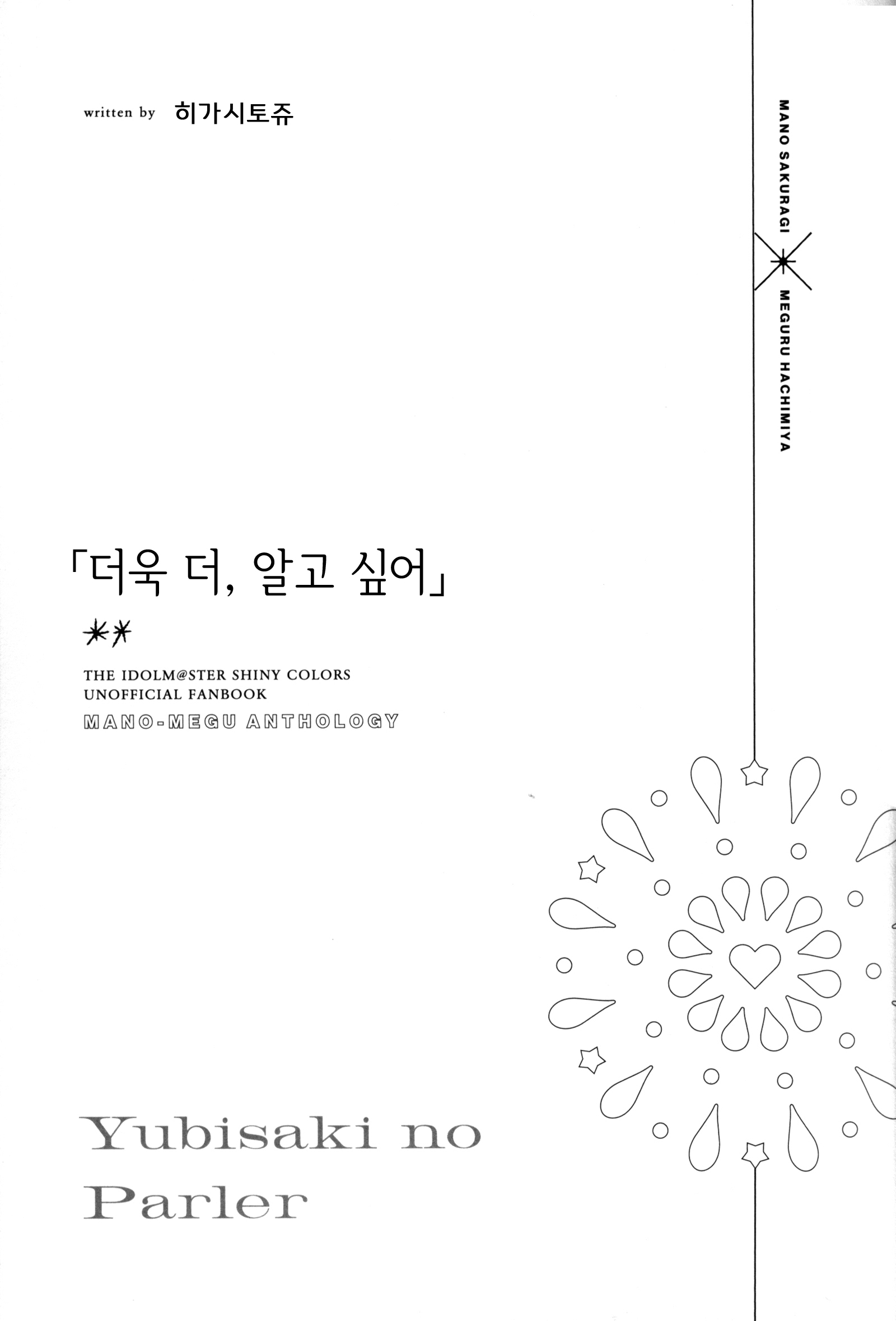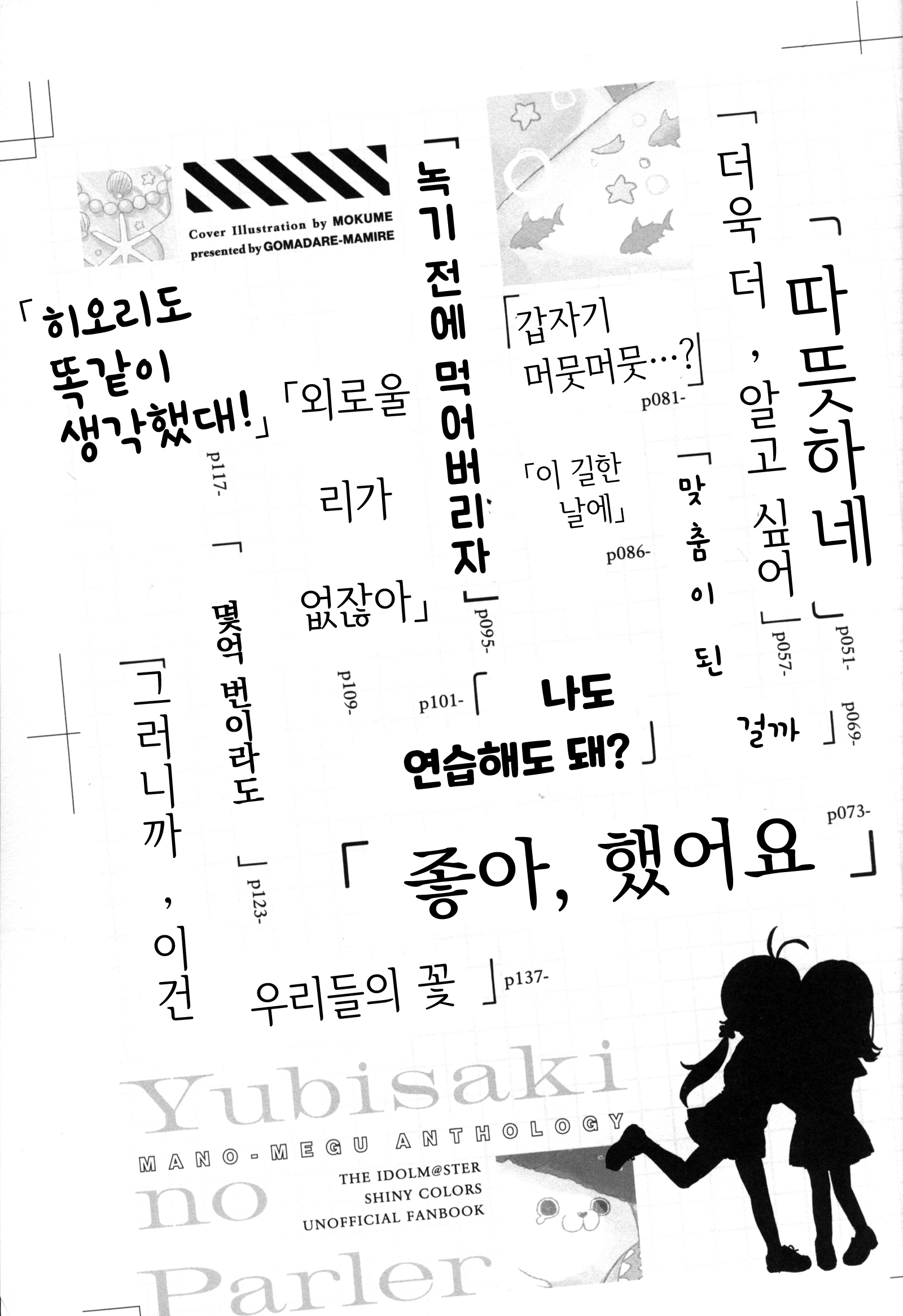 SSF09에서 나온 마노메구 합동지. 다른 일루미 합동도 그렇지만 어떻게 이렇게 호화 멤버만 모으는걸까 싶을 정도로 샤니마스 2차창작 올스타즈? 같은 느낌의 합동지였다.