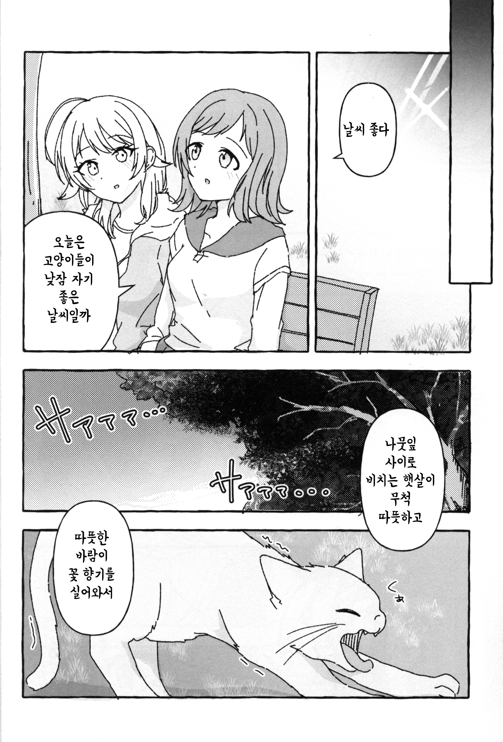 나는 그 다정한 모습을, 마노의 바로 옆이라는 특등석에서 바라보고 있었다. 별로 자세하게는 모르지만, 힐링이란 건, 이런 걸 말하는 걸까.