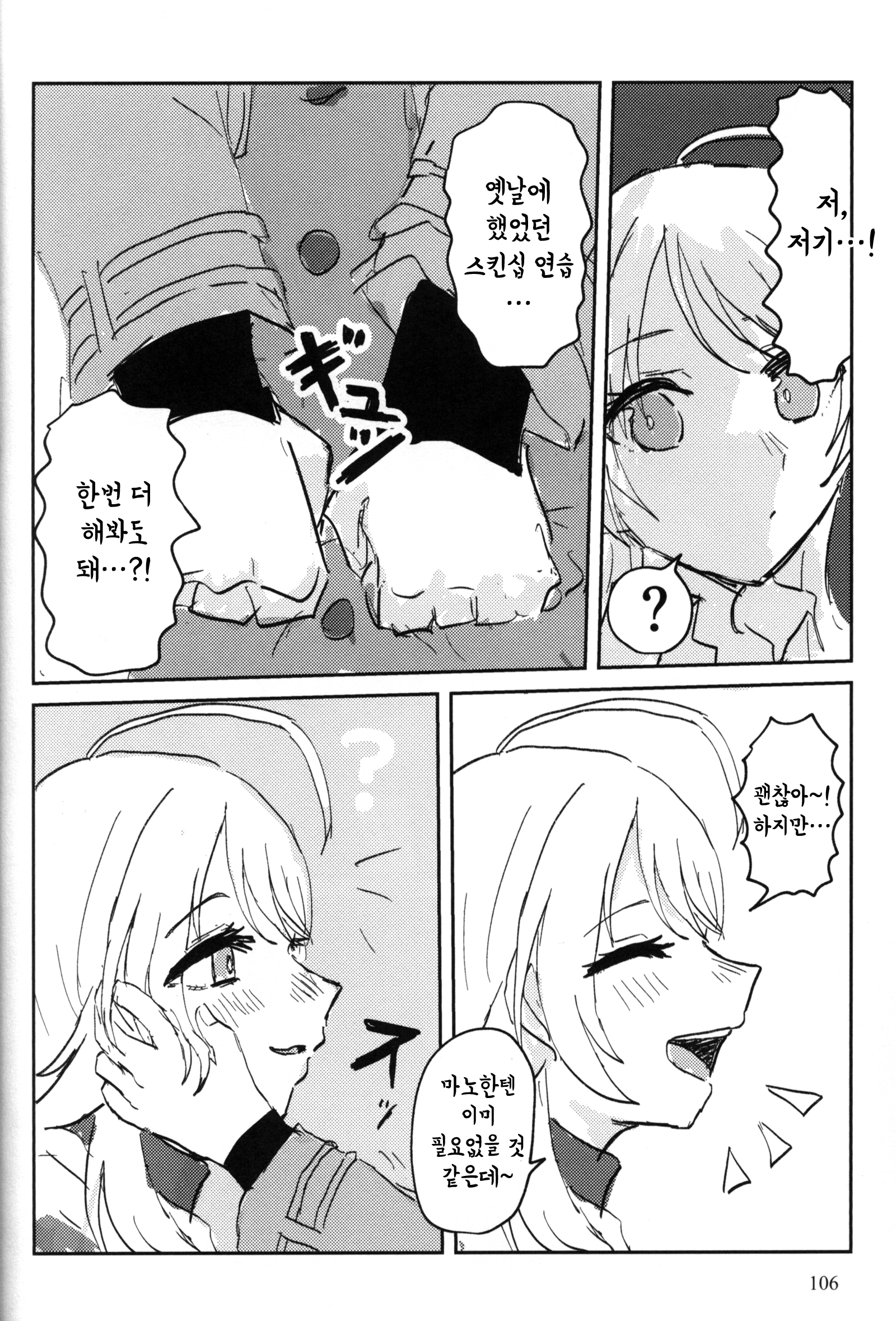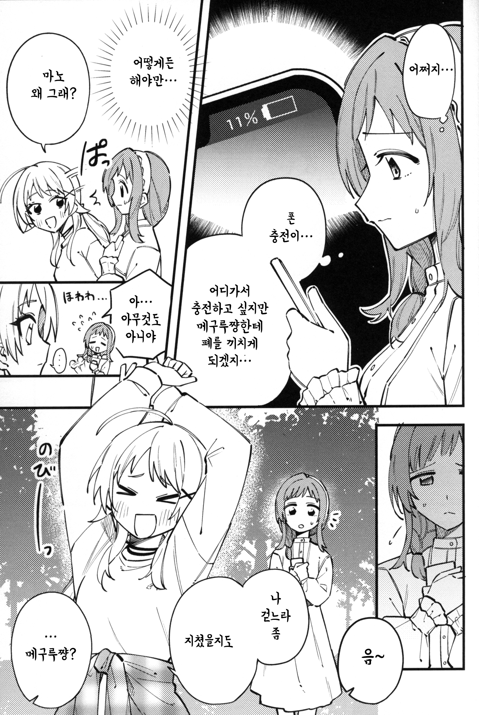 마노는 부끄러운 듯 곤란한 듯한 얼굴로 "메구루쨩은?"이라고 물었다.